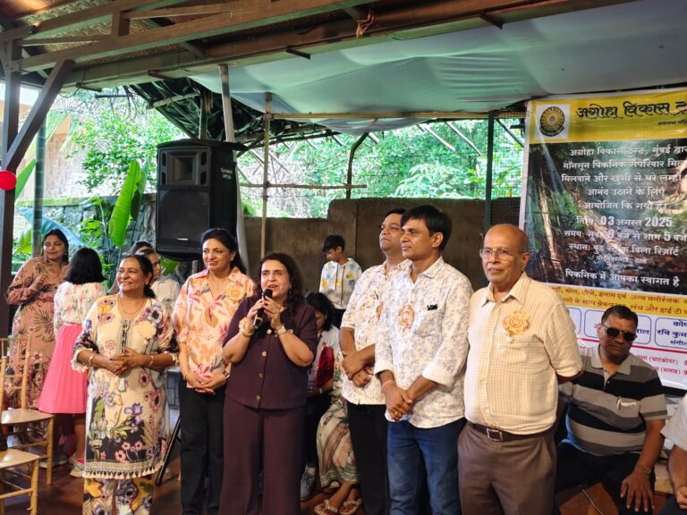 Mumbai: ठाणे– अग्रोहा विकास ट्रस्ट, मुंबई द्वारा आयोजित मानसून स्नेह मिलन समारोह का भव्य आयोजन वुडस्टॉक रिसॉर्ट, घोड़बंदर रोड पर सम्पन्न हुआ। इस रंगारंग कार्यक्रम में मुंबई और आसपास के क्षेत्रों से लगभग 700 से अधिक अग्रवाल परिवारों ने भाग लिया। बच्चों से लेकर बुजुर्गों तक, सभी ने उत्साह के साथ इस मिलन समारोह में सहभागिता निभाई। कार्यक्रम की शुरुआत पारंपरिक पंजाबी ढोल-नगाड़ों से हुई, जिससे आने वाले अग्रबंधुओं का स्वागत किया गया। आयोजन का उद्देश्य अग्रवाल समाज के विभिन्न क्षेत्रों के लोगों को एक मंच पर लाकर आपसी पहचान, सहयोग और समरसता को बढ़ावा देना था। इस स्नेह मिलन में मुंबई, नवी मुंबई, नेरुल, पनवेल, भिवंडी, ठाणे, कल्याण, डोंबिवली (पलावा), अंधेरी, गोरेगांव, मालाड, कांदिवली, बोरिवली, मीरारोड, भायंदर, दहिसर सहित कुल 62 अग्रोहा समितियों के प्रतिनिधि उपस्थित थे। इस अवसर पर न केवल सामाजिक संवाद हुआ, बल्कि कुछ परिवारों ने अपने बच्चों के विवाह को लेकर बातचीत भी की, वहीं कई व्यापारियों ने आपसी व्यापार सहयोग के अवसरों पर भी चर्चा की।